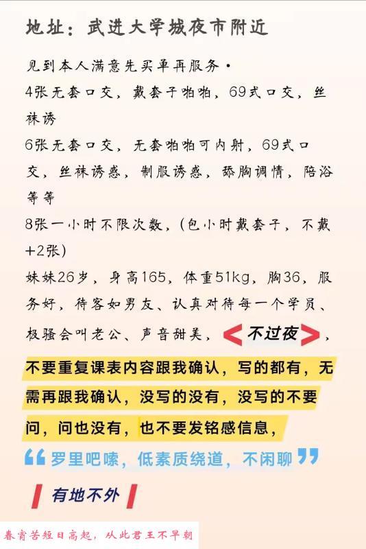 武进大学城那边单干的,400-600可以玩,可五套内射和毒龙,老凤楼了,性价比还可以。